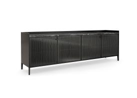 Meuble Tv En Metal Verre Et Plaquage Noyer 150 Cm Helix