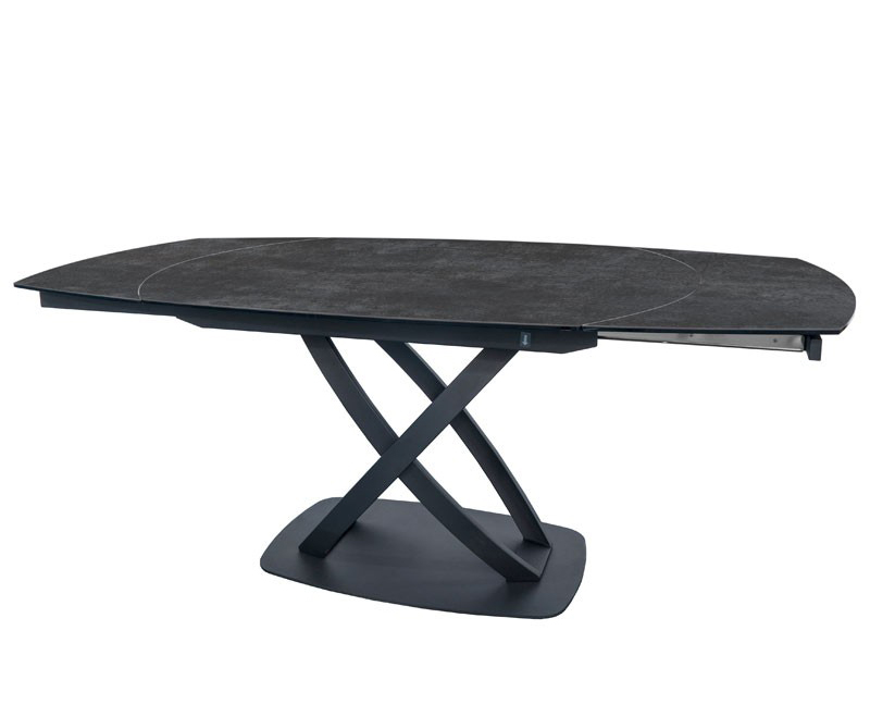 Pieds en métal laqué époxy anthracite, dessus et 2 allonges en verre 10mm recouvert de céramique 3mm corten TL89.