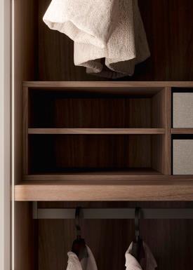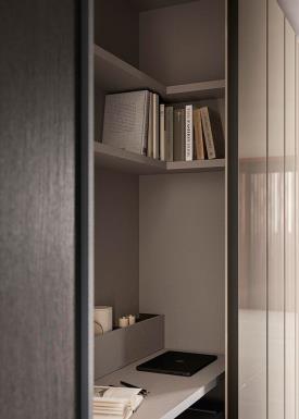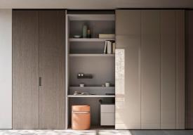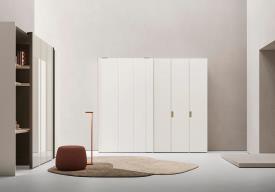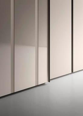 La porte Code présente un élégant motif de bandes verticales superposées en créant un effet visuel unique et moderne. Cette caractéristique permet une personnalisation avancée, en offrant une vaste gamme de combinaisons de matériaux. Les bandes en laqué brillant et mat s’alternent avec celles plus étroites en différents bois et finitions tels que les Fashion Wood et le nouveau Skin Effect. La porte Code enrichit la zone jour et la zone nuit d'une touche d'élégance sophistiquée et de polyvalence, en transformant les espaces avec un style innovant et distinctif.