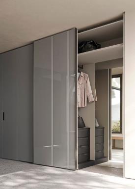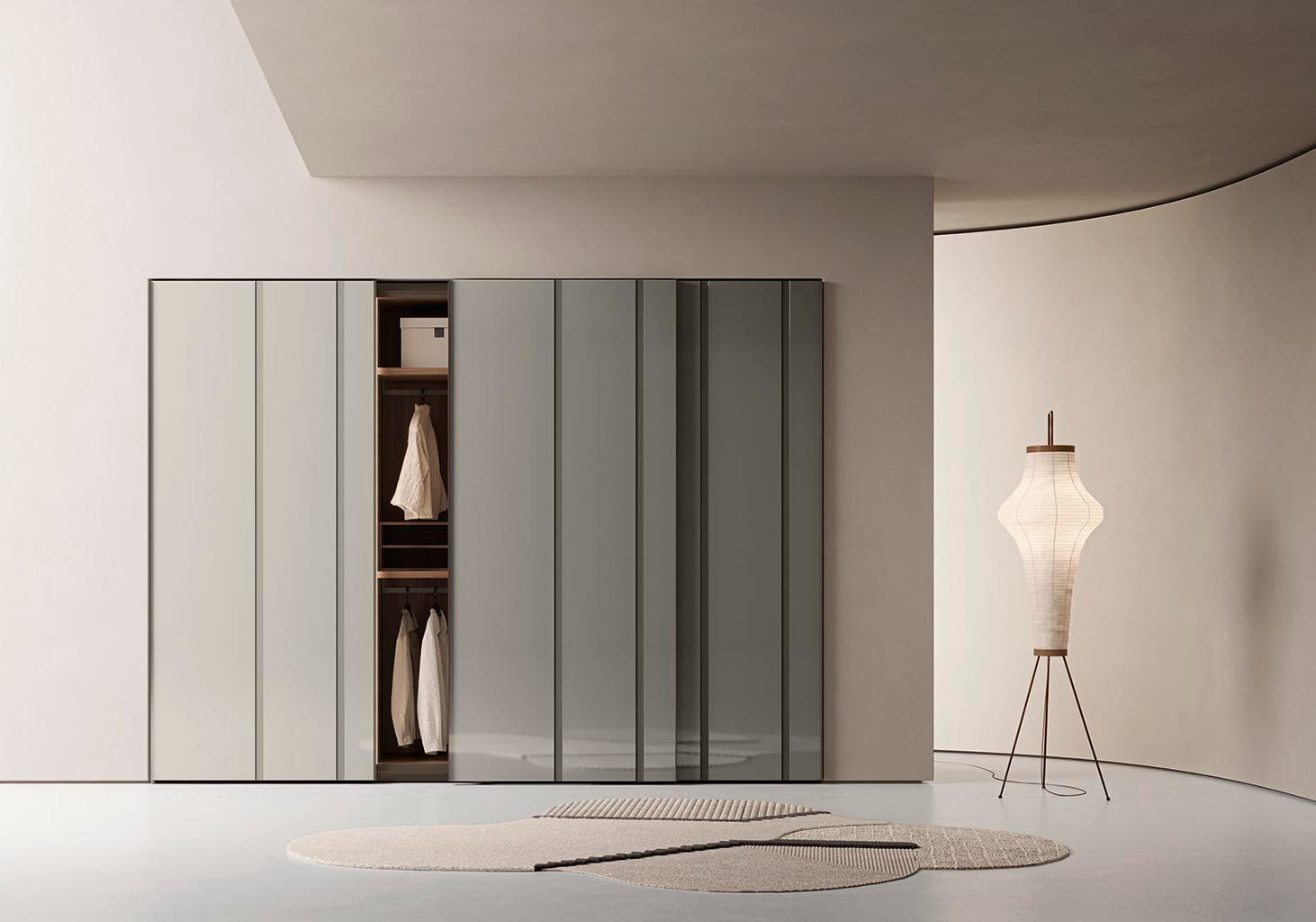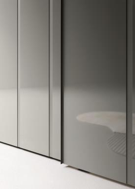 La porte Code est disponible dans les modularités coulissantes Poker. Les combinaisons de finitions pour les bandes verticales plus larges sont en Laqué mat et Laqué brillant, tandis que les bandes plus étroites sont disponibles en mélaminé, laqué, Skin Effect et barré. Le profil vertical en métal, raffiné et fonctionnel, ne définit pas seulement le design, mais facilite également l’ouverture avec style. Découvrez comment la porte Code allie élégance et innovation, en enrichissant vos espaces d'une touche de modernité sophistiquée.