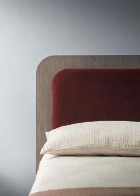 Levante est un lit caractérisé par le design doux et arrondi de sa tête de lit. La tête de lit est disponible dans une version avec coussins rembourrés déhoussables, la structure et les pieds sont en métal.