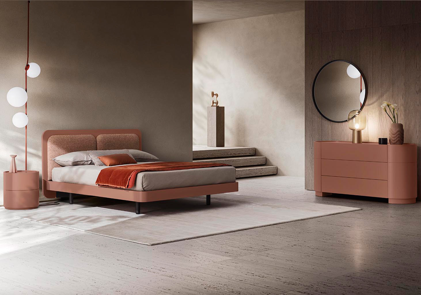 Levante se caractérisée par sa structure stondata, est un lit en bois idéal pour compléter la zone nuit. Il offre un refuge intime et accueillant, accompagnant le repos toute la nuit.