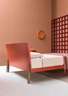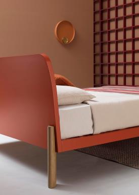 Paal est un lit en bois caractérisé par une structure essentielle, agrémentée par la courbure caractéristique de la tête de lit, disponible en finition fashion wood ou laquée. Il se distingue par sa légèreté visuelle et par son appui sur des pieds en bois profilés, proposés dans la riche gamme de finitions fashion wood. La tête de lit courbée repose directement sur les pieds solides, créant un détail d'emboîtement distinctif et raffiné, enrichis par le contraste entre les couleurs laquées et fashion wood