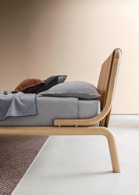 Rovì est un lit avec structure en bois massif disponible dans les finitions Fashion Wood Alf DaFrè, caractérisé par d'élégants raccords en nickel ou Moka Shine selon la finition, qui soulignent la qualité artisanale du projet.