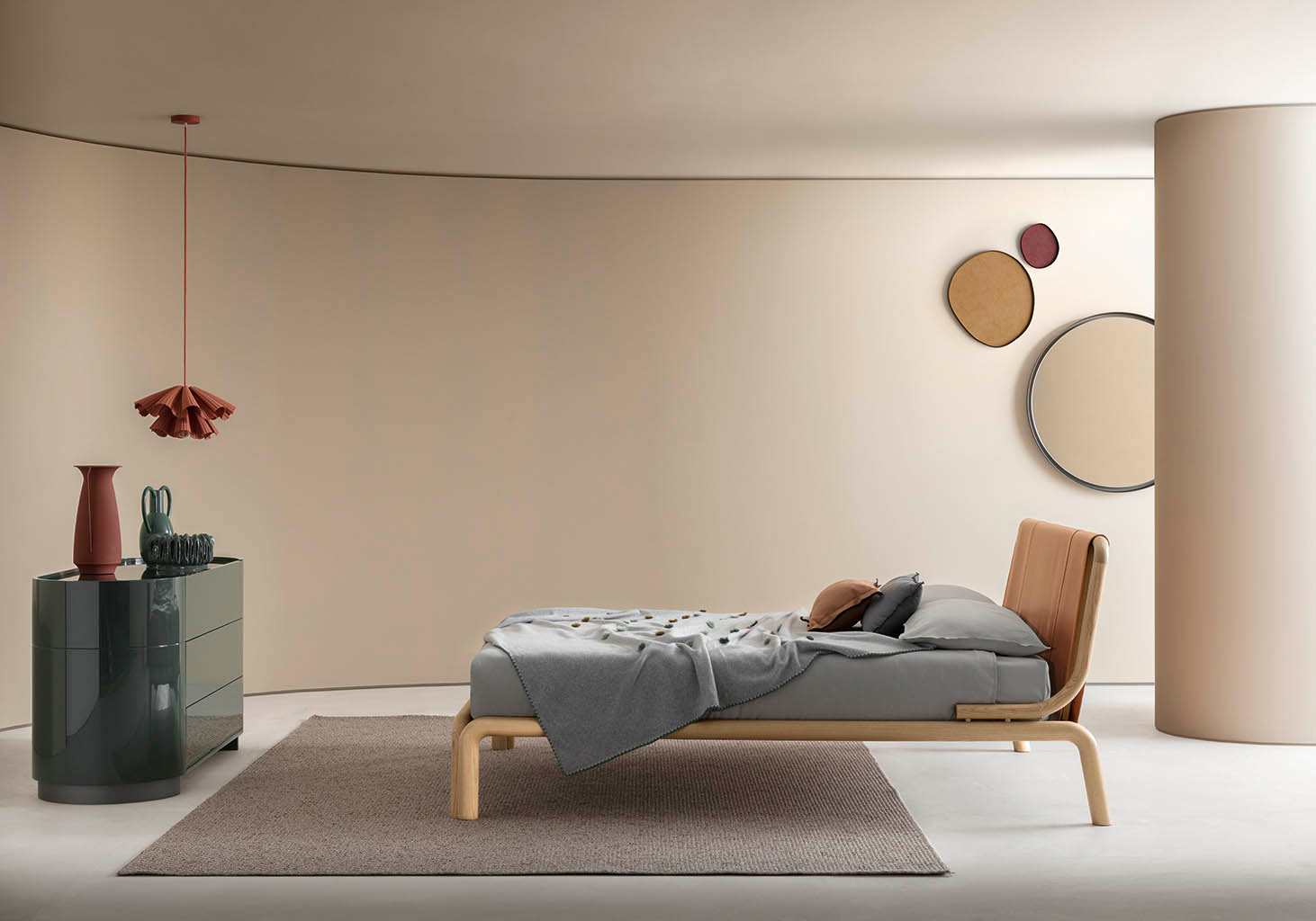 Rovì est la réédition exclusive d'un lit emblématique des années 70 signé rovilio da frè, symbole d'un design intemporel qui alliant artisanat et innovation. Rovì se distingue par sa structure sinueuse et élégante, réalisée en chêne massif avec des assemblages à dentelle, détail distinctif d'une grande raffinété. Le revêtement de la tête de lit, disponible en cuir, tissu ou peau, offre de nombreuses possibilités de personnalisation, mettant en valeur l'esthétique et le confort du projet.
