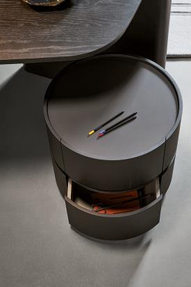 Les commodes Moneypenny sont des alliées discrètes et indispensables dans tous les espaces de bureau, permettant de ranger les documents avec soin et confidentialité, à l'image de l'efficace assistante Miss Moneypenny dans la série de films James Bond. Moneypenny est également un excellent complément de rangement, utilisé seul ou combiné avec un bureau, arborant une esthétique raffinée typique de sa synthèse formelle et design. La simplicité du design de la commode présente un élégant cylindre en bois courbé, associé à l'efficacité mécanique des grands tiroirs intégrés coulissants, en fait un meuble polyvalent parfait pour tout environnement, du bureau professionnel au bureau à domicile, en passant par le salon et la chambre à coucher. Une version avec des roulettes est également disponible, idéale comme surface de support facilement déplaçable et prête à être utilisée à tout moment.