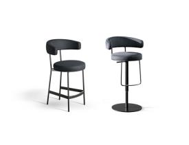 "Neuilly Too se distingue par sa finesse et ses qualités formelles uniques qui marient la pureté géométrique du tabouret classique à un confort immédiatement perceptible. Neuilly Too se distingue par son image délicate et ses qualités formelles uniques qui allient la pureté géométrique du tabouret classique à un niveau de confort évident au premier coup d'œil. Les proportions élancées de la structure métallique linéaire mettent encore plus en valeur l'assise circulaire rembourrée tandis qu'en même temps le profil ergonomique du dossier/accoudoir accueillant offre une position assise naturelle et garantit au tabouret une grande facilité d'utilisation. à la fois dans les espaces bar et face aux comptoirs des salles à manger.