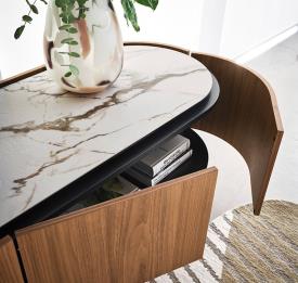 Lake est une collection de buffets qui se distingue par ses lignes douces et courbes. La forme ovale est accentuée par le dessus encastré et légèrement réduit par rapport au périmètre, créant un espace utile pour l’ouverture des portes et tiroirs. Fini sur chaque côté et sans coins, le buffet est idéal pour être placé n'importe où dans le salon. Maintenant disponible en plusieurs tailles.