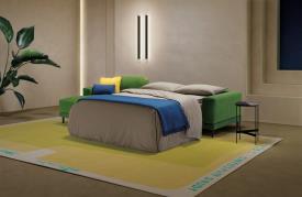 Mécanisme : canapé-lit convertible avec sommier standard électrosoudé et pieds h 13 cm.