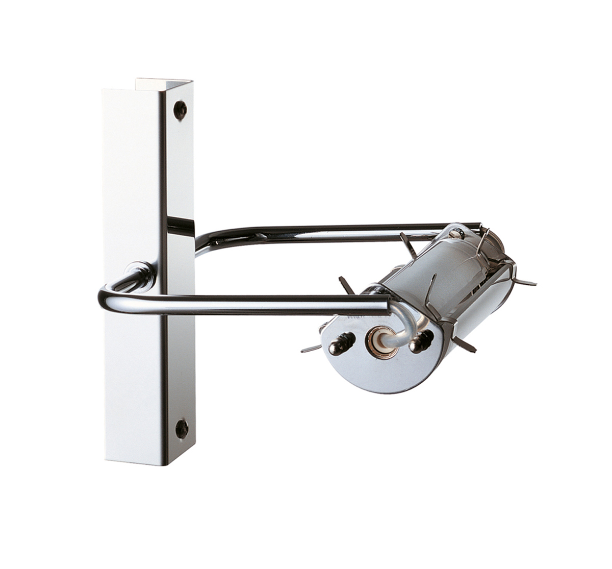 Fontana Arte Design Livio Castiglioni, Pietro Maria Castiglioni, 1972 - Réf. FP15045250CRNE Dimensions : 15 x 14 cm Le système Scintilla, absolument novateur, allie la polyvalence essentielle d'une lampe décorative à une puissance d'éclairage comparable à celle d'un système technique. Le succès retentissant de ce système a incité l'entreprise à concevoir, au début des années 80, une version sur pied, dont la structure principale est fixée au socle et à la tige en métal. Applique murale à lumière diffuse et modulable. Structure en métal chromé. La lampe est fournie avec deux diffuseurs : l’un en verre borosilicate transparent et l’autre en verre borosilicate sablé. Un réflecteur en aluminium anodisé, produisant une lumière indirecte, est disponible séparément. Ampoule non fournie. lampe applique