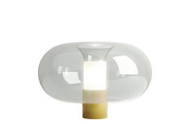 Fontana Arte Design Federico Peri, 2020 - Réf. F442305550OTNE / F442310550OTNE / F442305550NENE / F442310550NENE Dimensions : 40 cm x 20/27 cm Deux matériaux : le métal et le verre, fidèles à la tradition historique de FontanaArte. Le métal sert de base et renferme la source lumineuse, tandis que le verre, véritable protagoniste du projet, est travaillé avec expertise par des artisans qualifiés. Un procédé de fusion entre une partie en verre transparent et une partie en verre satiné, d'où se diffuse la lumière, confère à la Fontanella sa forme unique. Le tube intérieur est fileté, sablé puis assemblé à la pièce de verre soufflé en forme de bulle. La finesse de sa fabrication réside dans l'assemblage manuel des deux parties, qui exige le savoir-faire d'un artisan. Par ailleurs, le verre, matériau de prédilection de FontanaArte depuis toujours, est d'une cristallinité exceptionnelle. L'utilisation d'ampoules, dimmables ou non, pour une consommation d'énergie minimale, parachève la modernité de cette création FontanaArte. lampe de table