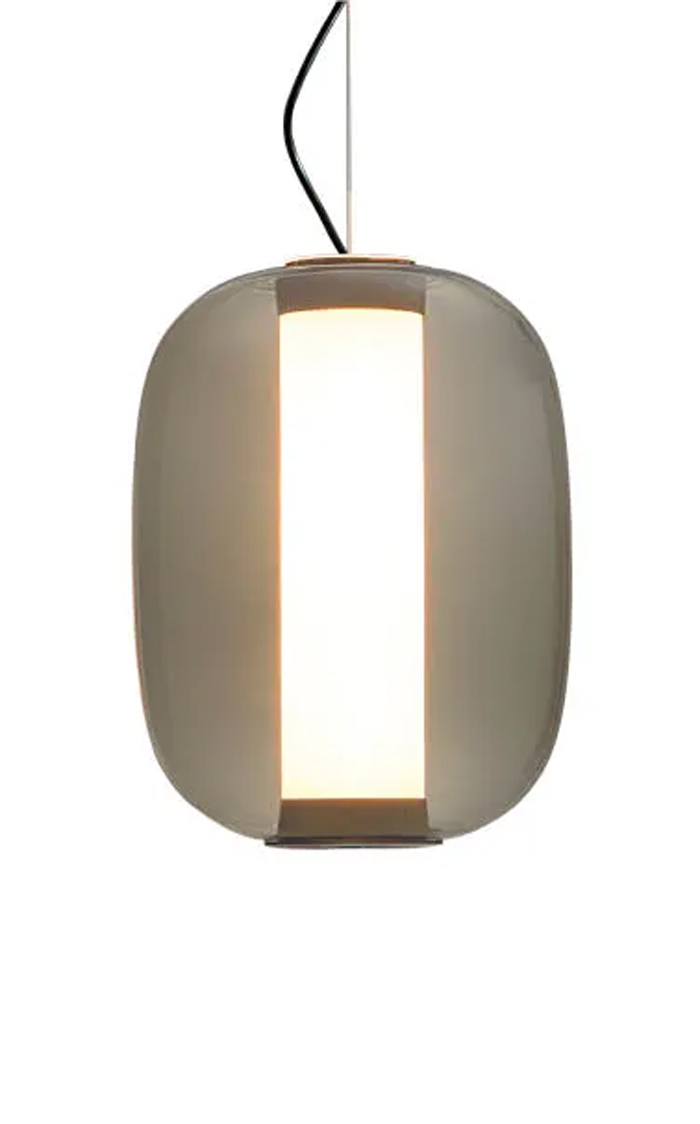 Fontana Arte Design. Gabriele et Oscar Buratti, 2020 - Réf. F441785550NFLE / F441790550NFLE Dimensions : Ø 31/41 x h 250 cm La « forme de la lumière » est au cœur de ce projet de Gabriele et Oscar Buratti. Initiée avec la collection de lampes Equatore, présentée en 2017, la gamme s'enrichit aujourd'hui de nouvelles finitions et des séries Meridiano et Tropico. Ces lampes se caractérisent par des formes en verre et en métal qui diffusent la lumière à travers des couches opalescentes, colorées et transparentes, créant ainsi des effets fascinants. La nouvelle lampe Meridiano est dotée d'un tube cylindrique vertical qui diffuse la lumière dans une capsule de verre transparent, soulignant son élégante forme ovoïde. Disponible en deux tailles, Meridiano se décline en suspensions moyennes et grandes. lampe à suspension