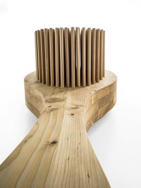Banc en bois de cèdre massif odoriférant qui tire son nom et sa forme de la brosse emblématique d'Aldo Coppola, reproduisant fidèlement son profil et le transformant en un objet d'ameublement sculptural. Le détail le plus surprenant ? Les poils, réinventés en bois massif, confèrent au banc un aspect unique et immédiatement reconnaissable. L'assise ergonomique offre un confort maximal, le rendant parfait aussi bien pour un moment de détente que comme une pièce emblématique et s'adapte à tous les espaces.
