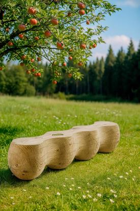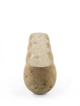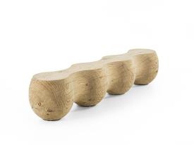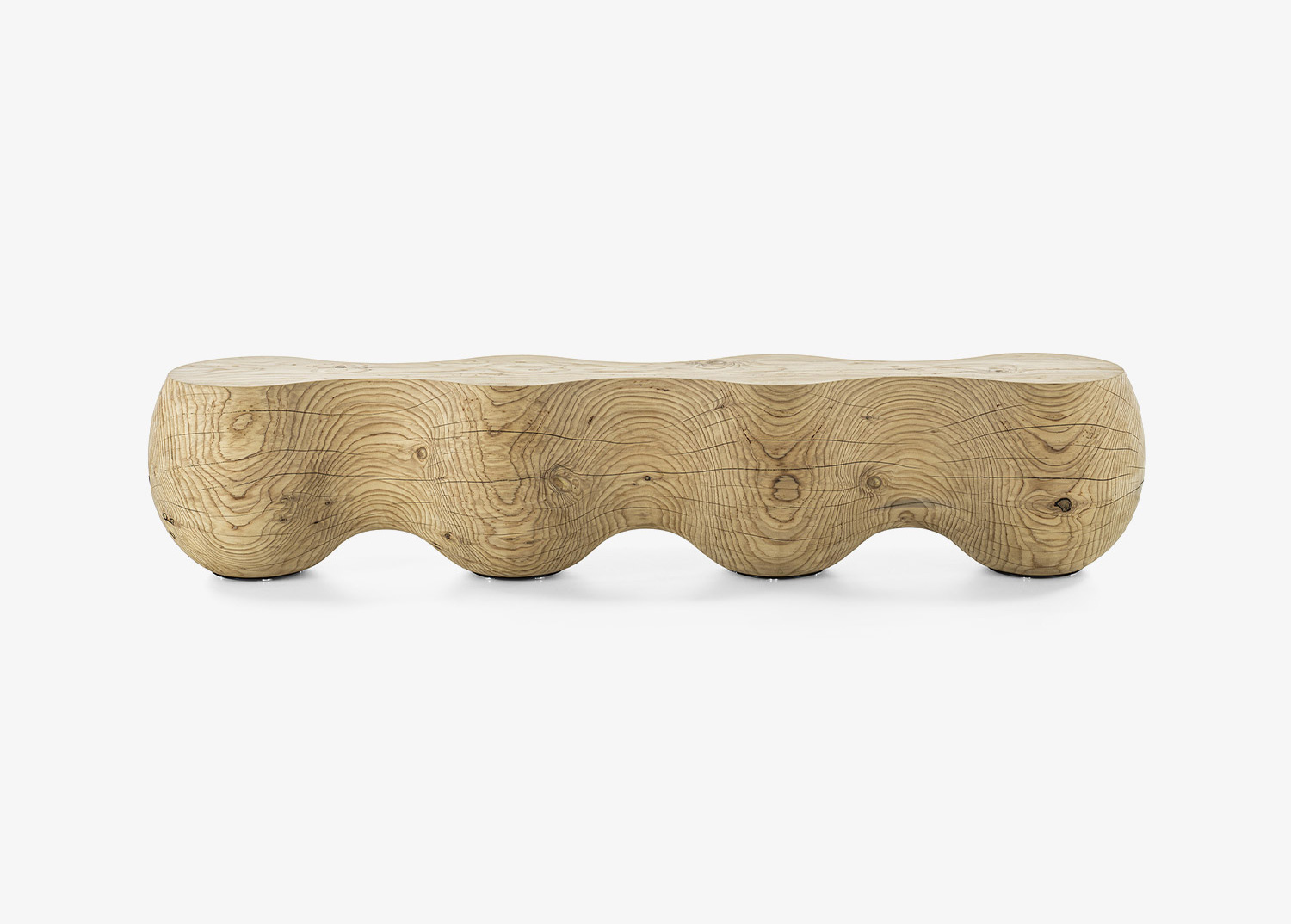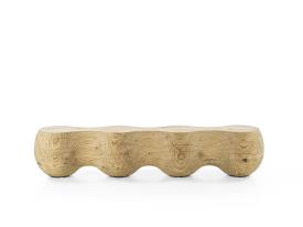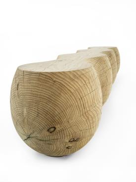 Banc en bois massif de cèdre du Liban, fabriqué à partir d'un seul bloc, il se caractérise par une fusion harmonieuse de quatre sphères qui rappellent la forme organique d'une chenille. Le travail met en évidence une alternance de pleins et de vides qui confère une légèreté visuelle, tout en conservant la robustesse et la solidité typiques du bois.