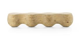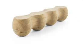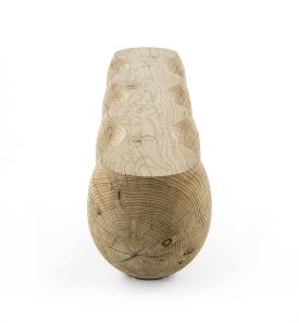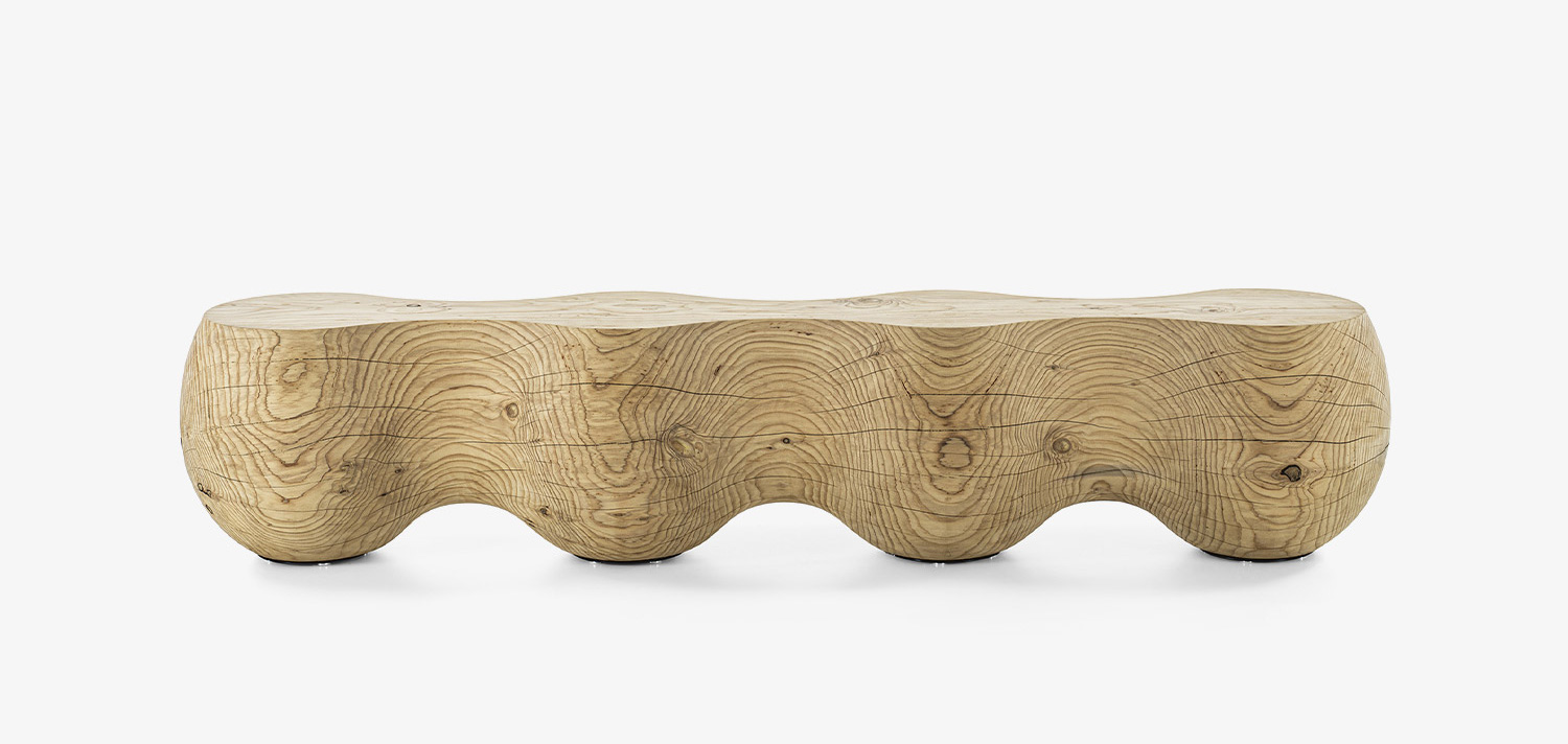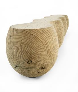 Banc en bois massif de cèdre du Liban, fabriqué à partir d'un seul bloc, il se caractérise par une fusion harmonieuse de quatre sphères qui rappellent la forme organique d'une chenille. Le travail met en évidence une alternance de pleins et de vides qui confère une légèreté visuelle, tout en conservant la robustesse et la solidité typiques du bois.