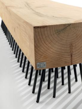 Riva 1920 Design. Fabio Lo Jacono, 2016 Dimensions : l 180 x h 48 x p 46 cm Banc avec assise en un seul bloc de cèdre massif odoriférant, doté d’une assise ergonomique posée sur des montants en acier inclinés de différentes façons. banc outdoor