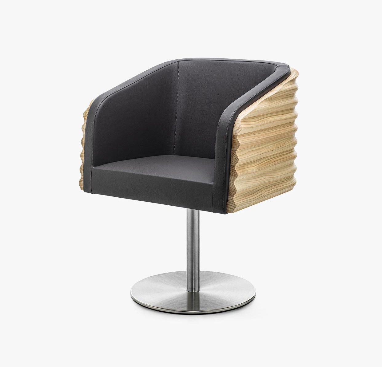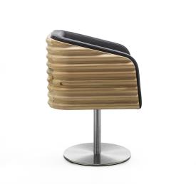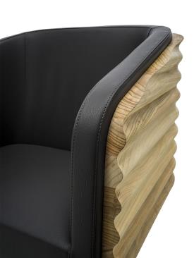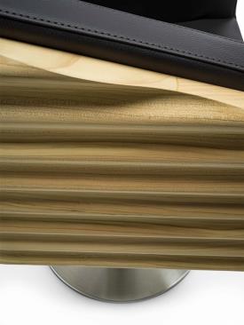 Un fauteuil en bois de cèdre massif odoriférant aux lignes fluides et enveloppantes transforme le concept d'assise en un rituel de pur confort. Sa forme organique et ondulante, sculptée avec précision, met en valeur la beauté naturelle de la matière première, tandis que son ergonomie parfaite garantit une expérience de relaxation absolue. KOMODA n'est pas un simple meuble, mais une invitation à redécouvrir le luxe de la simplicité, en parfaite harmonie avec la philosophie de beauté et de bien-être d'Aldo Coppola. Piètement pivotant en acier satiné.