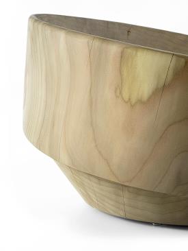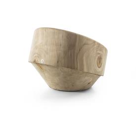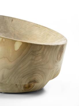 Fauteuil en bois de cèdre massif odoriférant, fabriqué à partir d’un seul bloc. Un monolithe sculptural au design curviligne doté d'une assise ergonomique alignée avec le dossier. Son design naît d’une recherche minutieuse sur l’impact de formes circulaires parfaites, presque cinétiques, sur les volumes des matières premières.