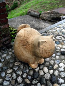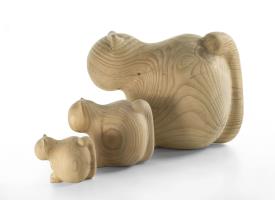 Complément d'ameublement en bois de cèdre massif parfumé travaillé d'un seul bloc, dont le design sculptural s'inspire du monde animal.