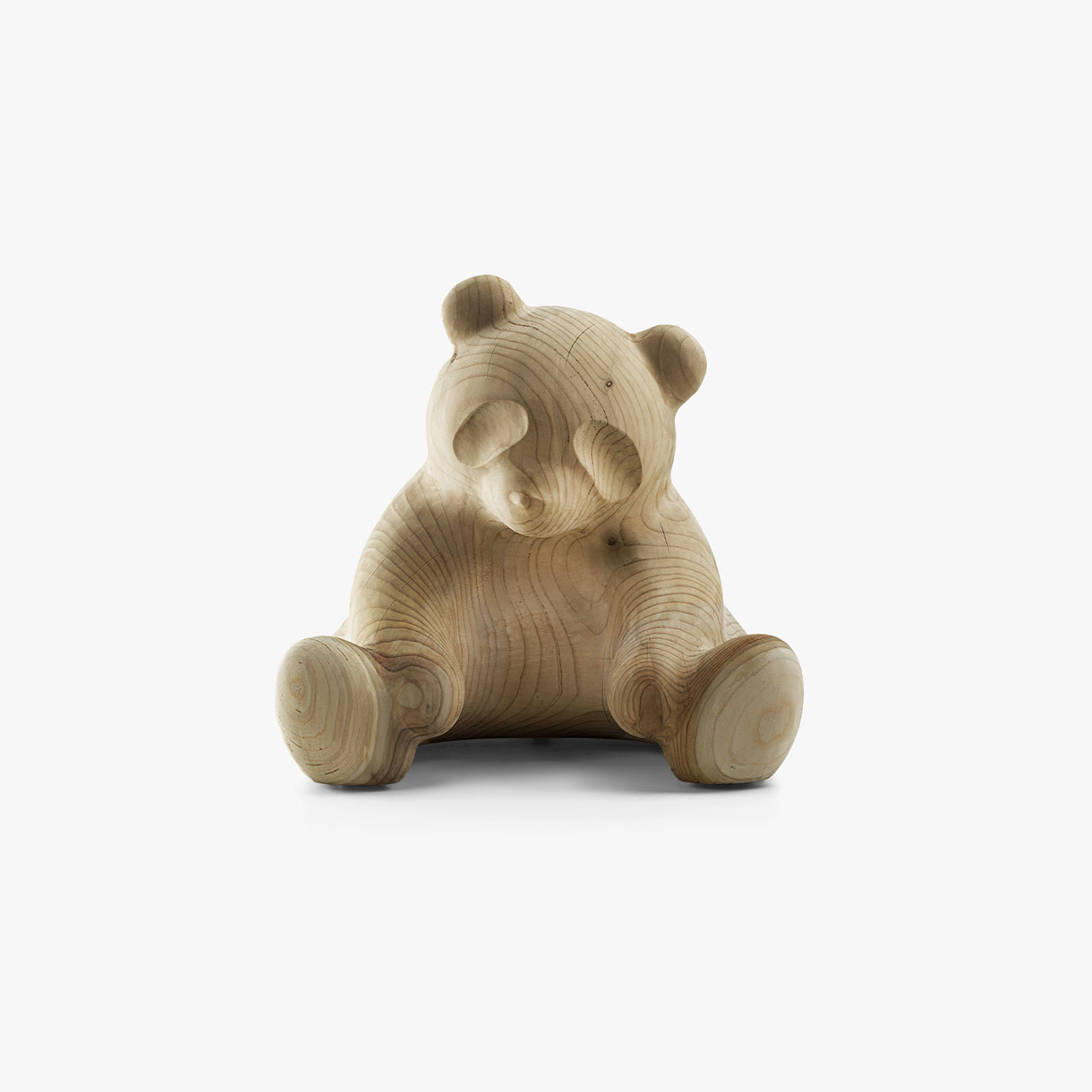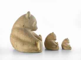 PANDA, design de Setsu & Shinobu Ito Accessoire en bois de cèdre massif odoriférant, fabriqué à partir d'un seul bloc, dont le design sculptural s'inspire d'un panda. Disponible en trois tailles: big, medium et small.