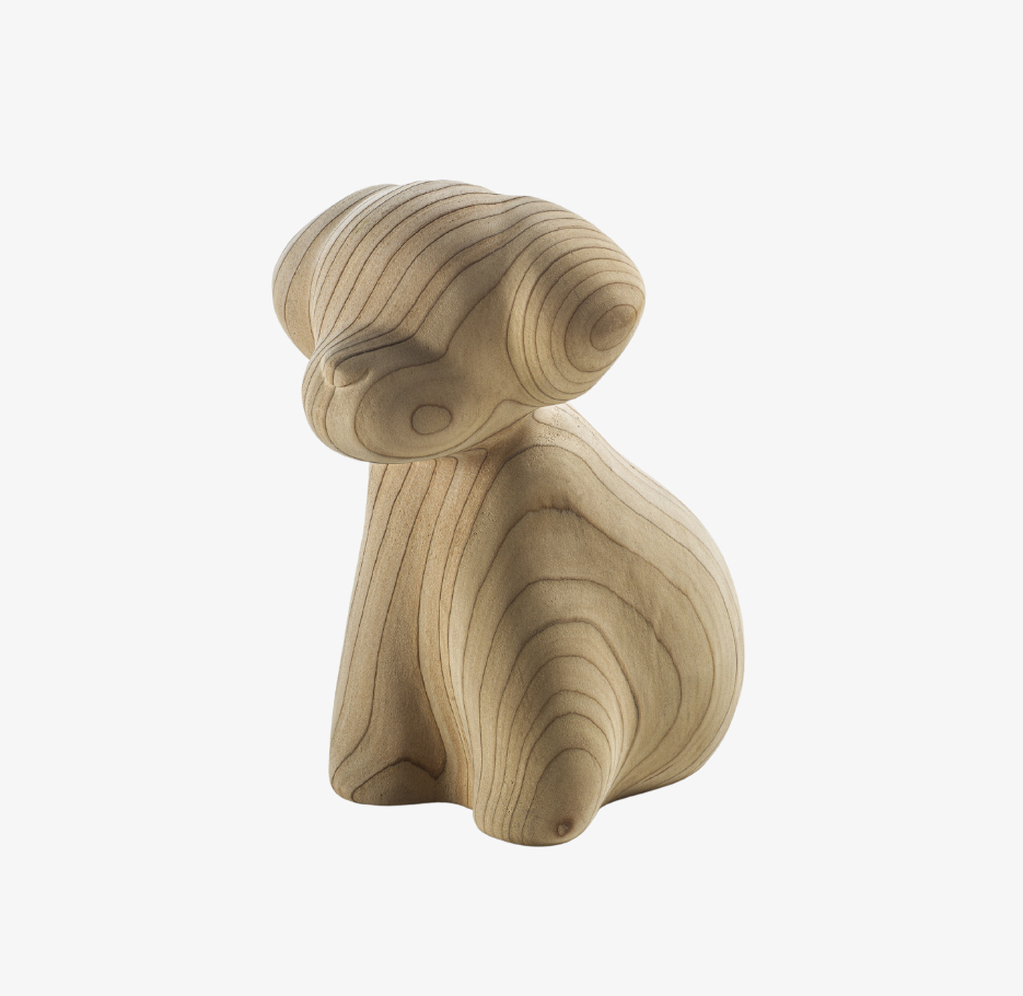 Accessoire d'ameublement fabriqué à partir d’un seul bloc de cèdre massif odoriférant, dont le design sculptural s'inspire d'un chien de race maltaise.Disponible en trois tailles: big, medium e small. Disponible en trois tailles: big, medium et small.
