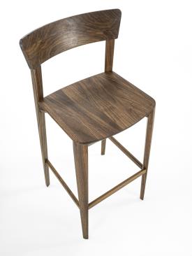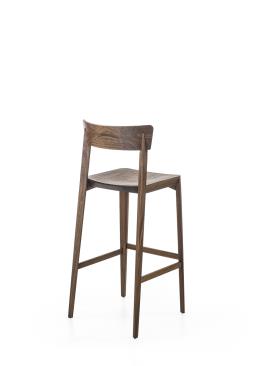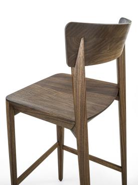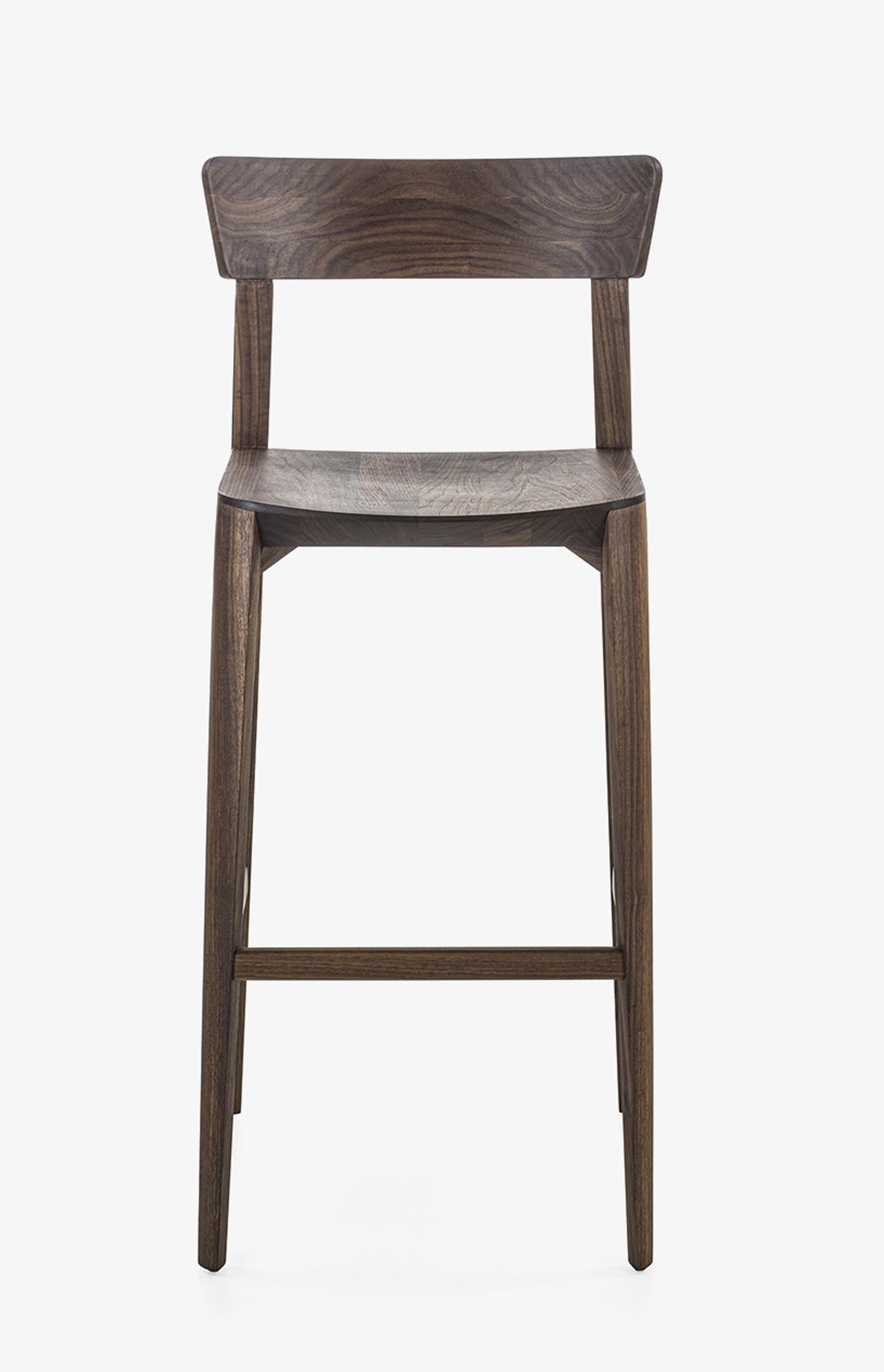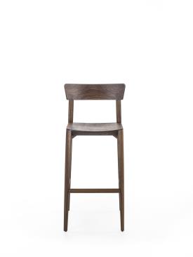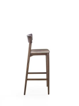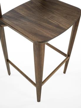 Version tabouret de bar de la chaise MIA, entièrement fabriqué en bois massif et inspiré des sièges classiques des bistrots traditionnels.