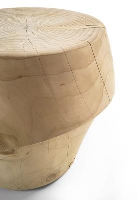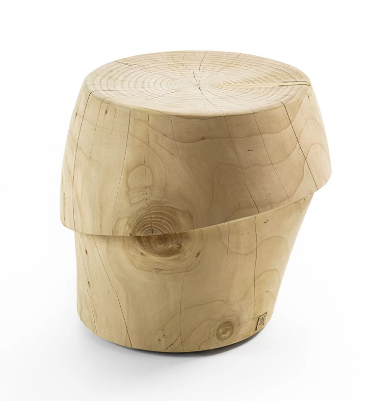 Tabouret en bois de cèdre massif odoriférant, fabriqué d'un seul bloc, avec un design inspiré d'un casque.