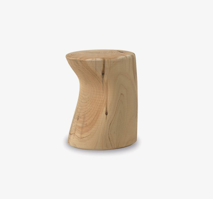 Design. Marc Sadler, 2009 Dimensions : l 33 x h 44,5 x p 35 cm Tabouret fabriqué à partir d'un seul bloc de cèdre massif odoriférant, caractérisé par une encoche latérale. tabouret extérieur outdoor