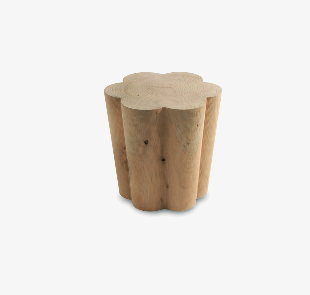 Alessandro Mendini, 2012 Dimensions : l 42 x h 45,5 x p 46 cm Tabouret fabriqué à partir d'un seul bloc de cèdre massif odoriférant, qui rappelle la corolle d’une fleur. tabouret extérieur outdoor