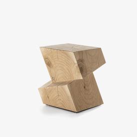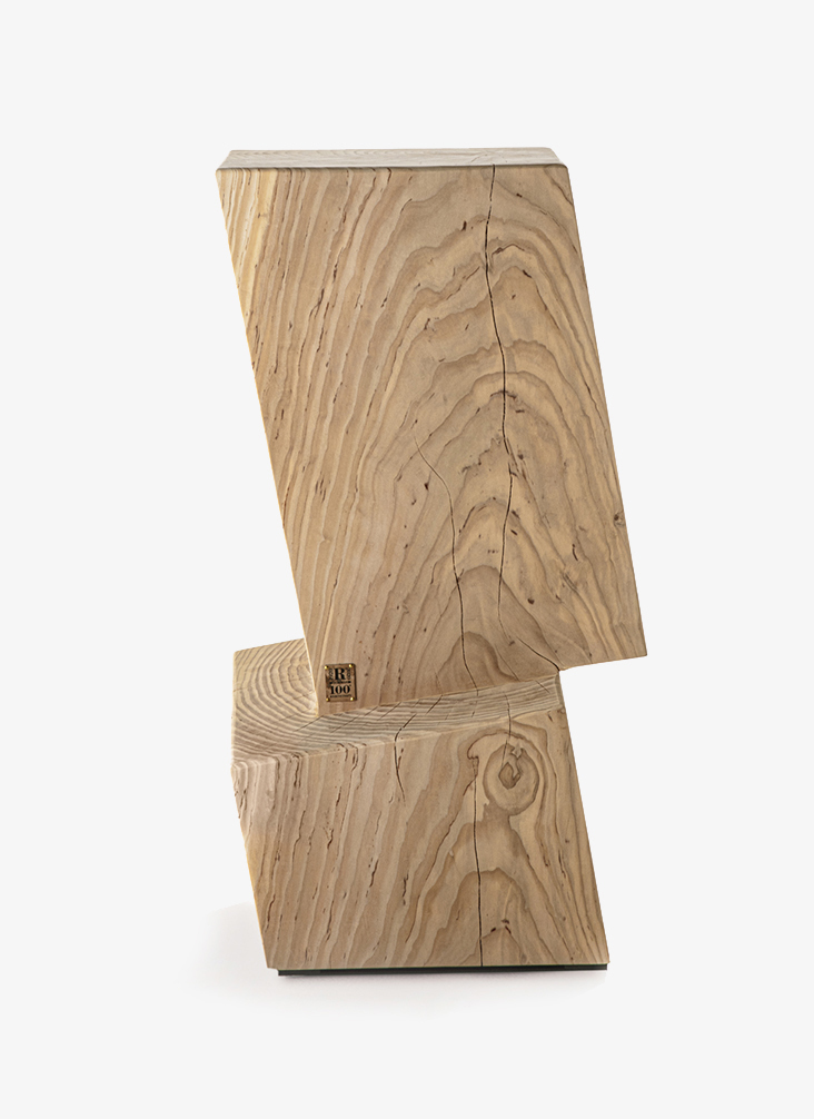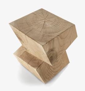 Riva 1920 Design. Giovanni Tomasini, 2020 Dimensions : l 40,5/41 x h 46/76 x p 39,5/40,5 cm Tabouret fabriqué à partir d'un seul bloc de cèdre massif odoriférant dont la forme veut être un hommage aux maisons cubiques de l’architecte hollandais Piet Blom. Dans la variante haute la partie inférieure peut être utilisée comme repose-pieds. tabouret extérieur outdoor